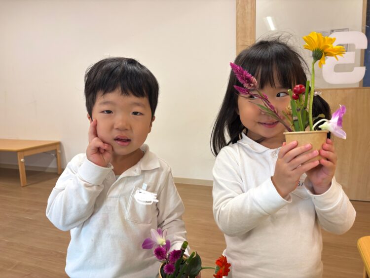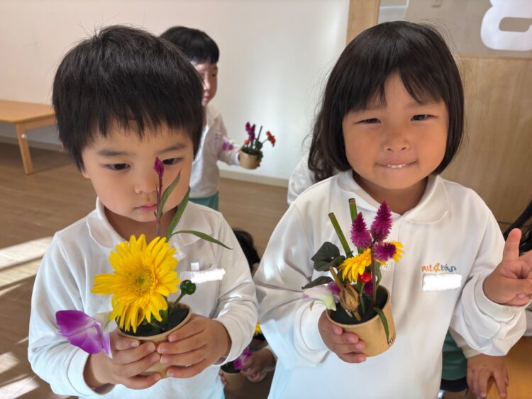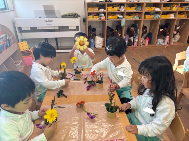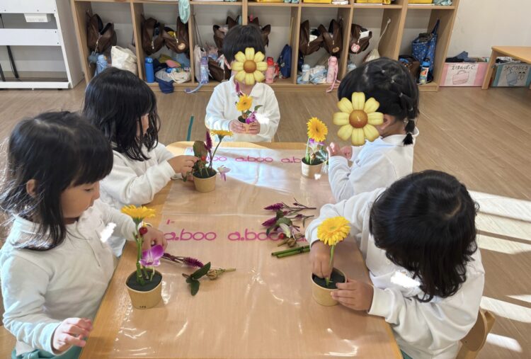 フラワーにも慣れてみんな上手にお花を扱っています😊