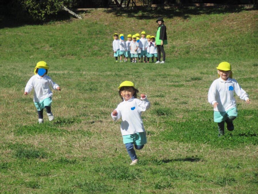日の当たる広場に行き、レディゴー!!の合図で走りました☺