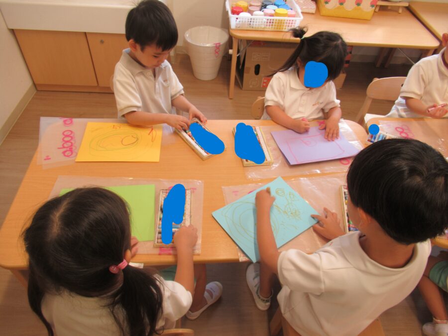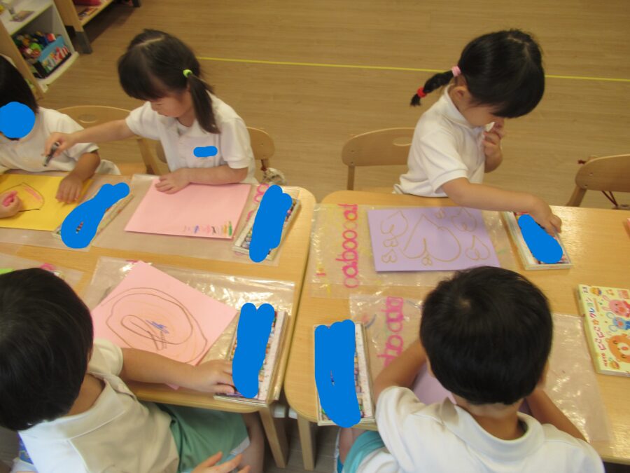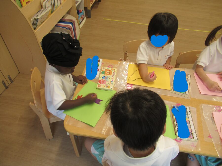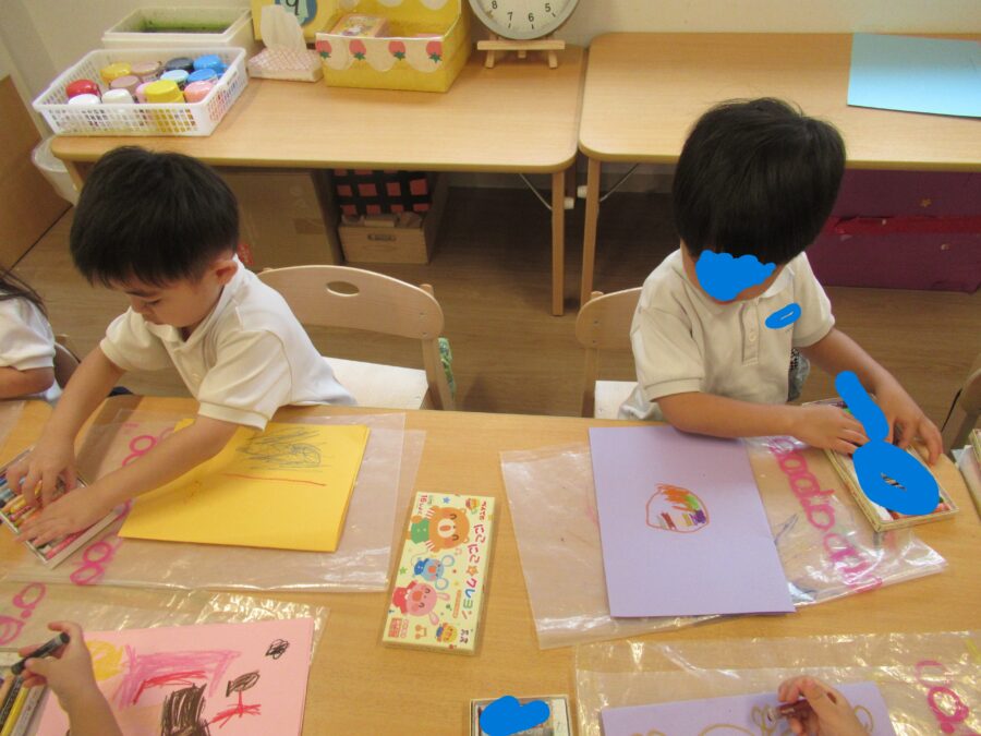 好きな画用紙を選んで、好きな絵を思い思いに描くぱんだ組のみんな☺