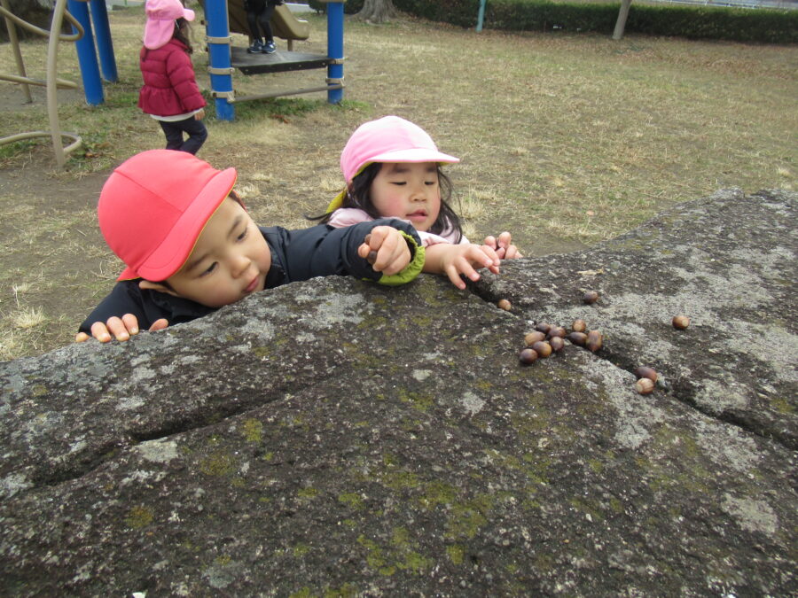 岩の上には誰かが置いて行ったどんぐりの贈り物が!みんなで持って帰りました![]()