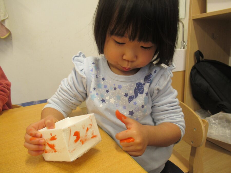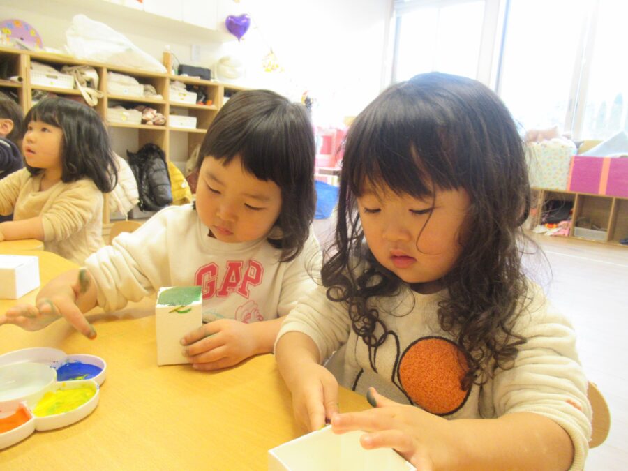 まずは豆を入れる升に色付けをしました。