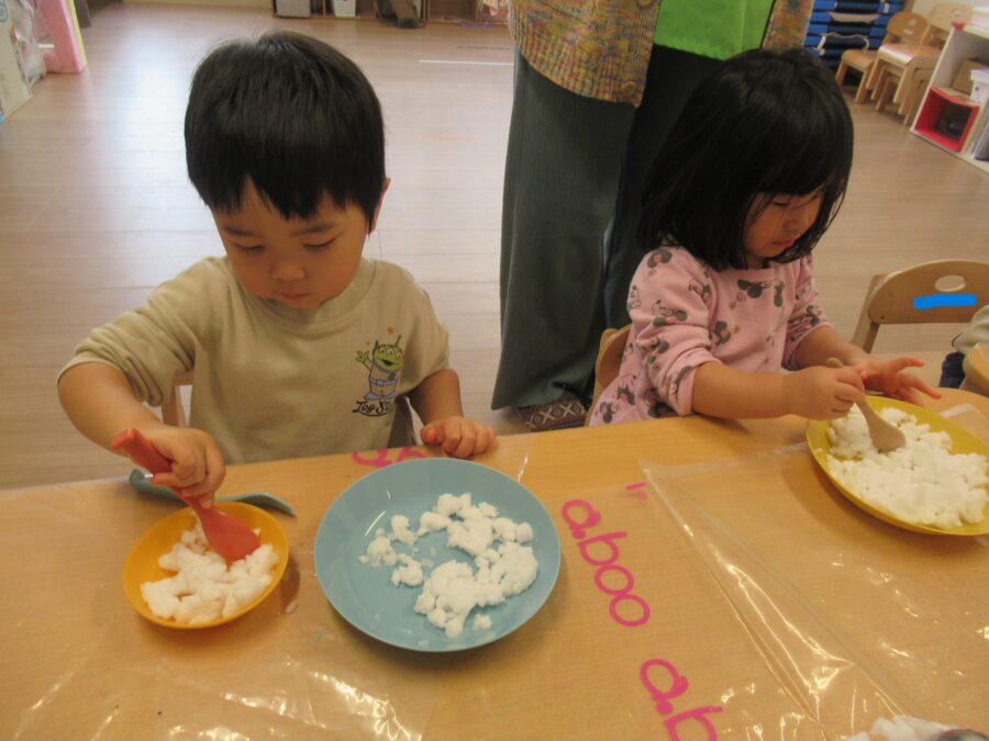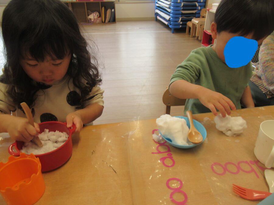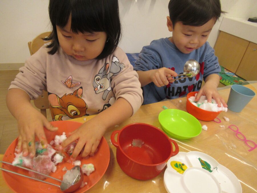 最後は雪が溶けて色水遊びになっていましたが……(笑)