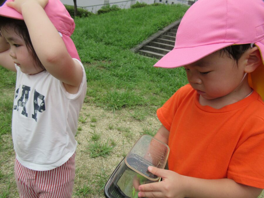 バッタやちょうちょなどを捕まえて遊びました。
