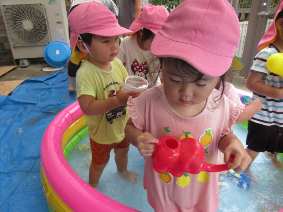 楽しい体操教室のあとはみんな大好き水遊びの時間。