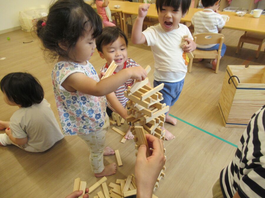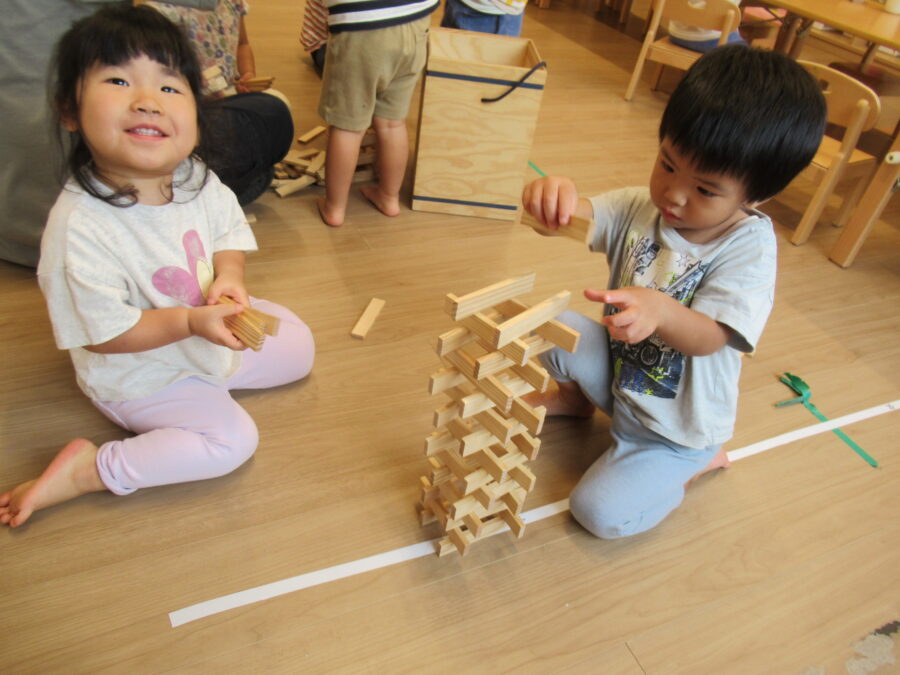 みんなで協力して大きいタワーを作る事を楽しんでいました