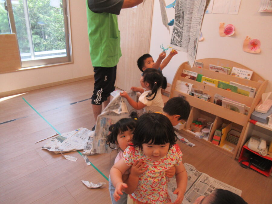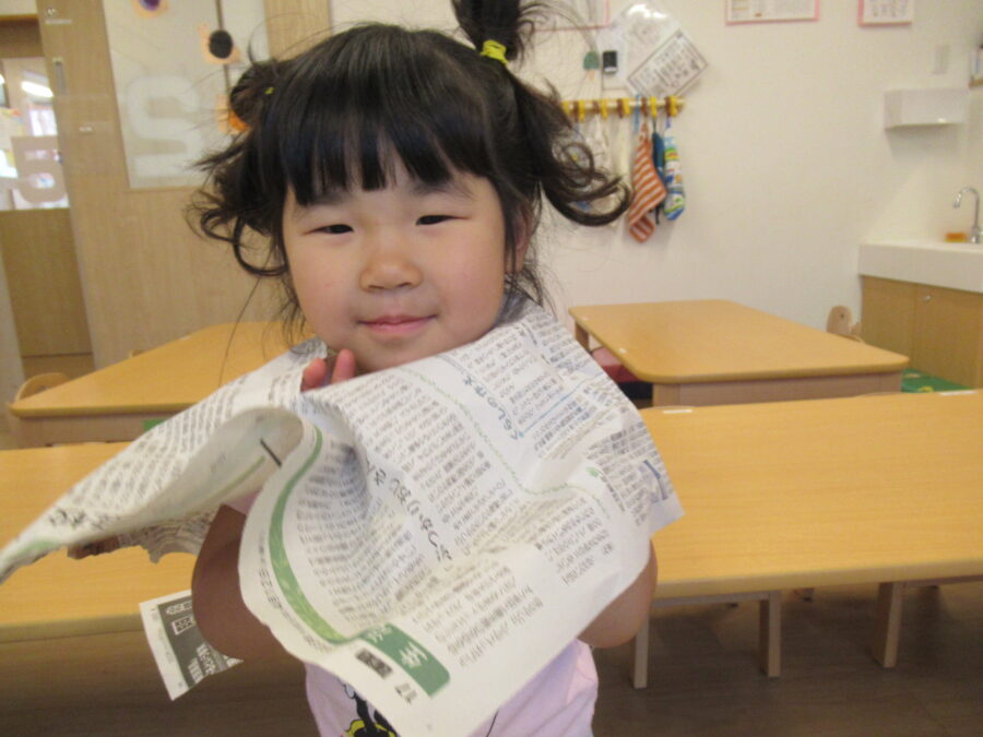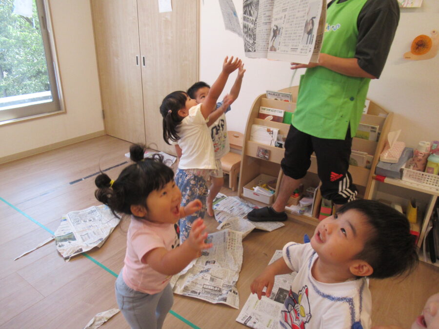 今日はお部屋で新聞遊びをしました!