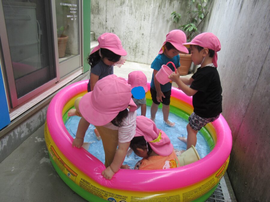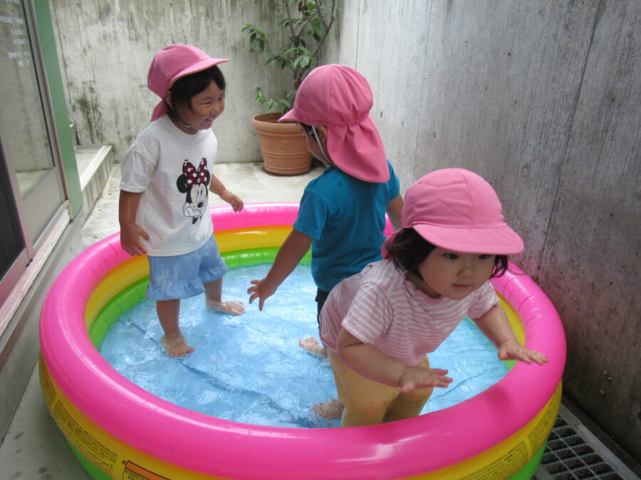 水をかけ合ったり、パシャパシャ触ってみたりと、