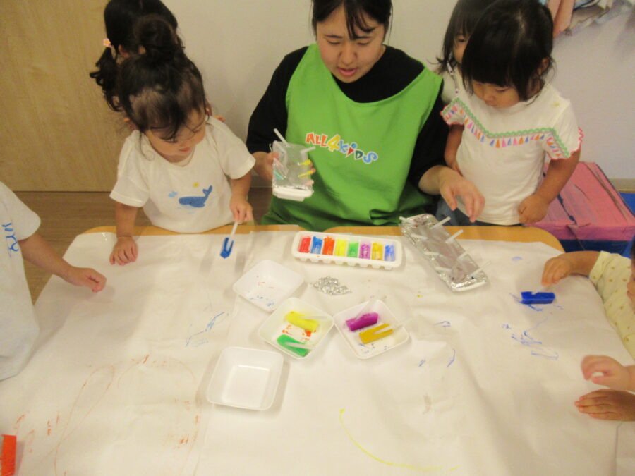初めて見る冷たい氷のクレヨンに