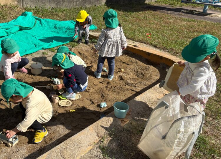 大好きなお砂場で、ご飯やケーキ🍰を作ってみたり…