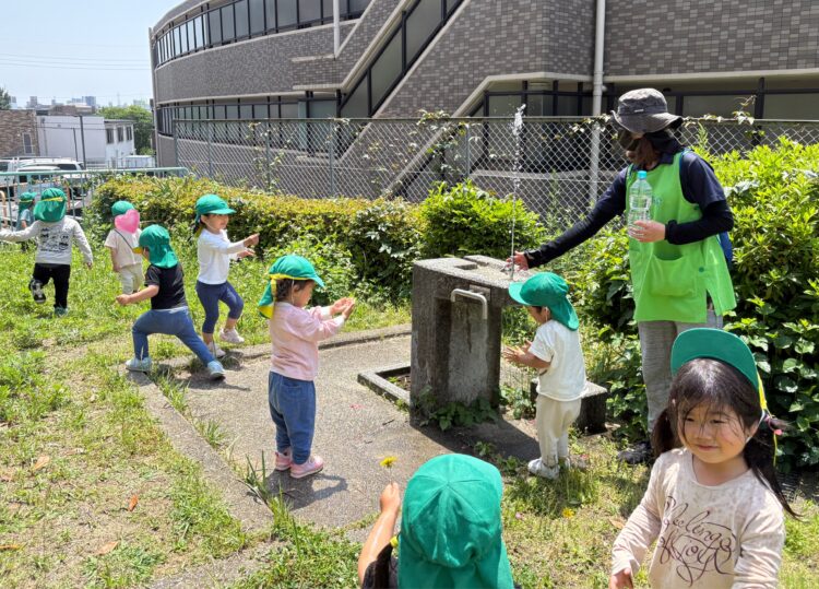 今日は、暑かったので公園で水遊びをしました😊