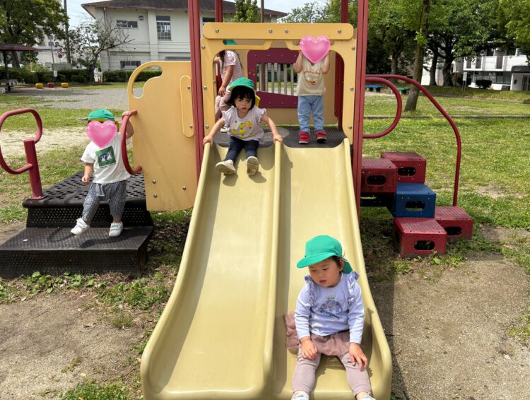 「どこに行きたい❓」の質問に、みんなの答えは「大坪公園‼️」ということで、いつもより時間もあったので頑張って行きました。