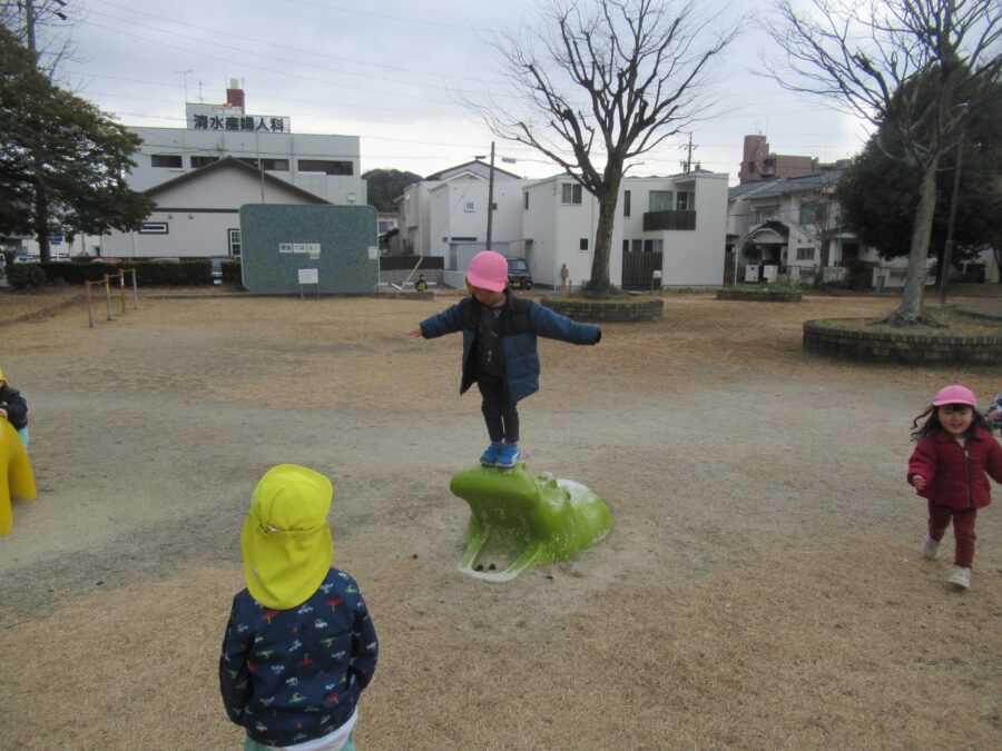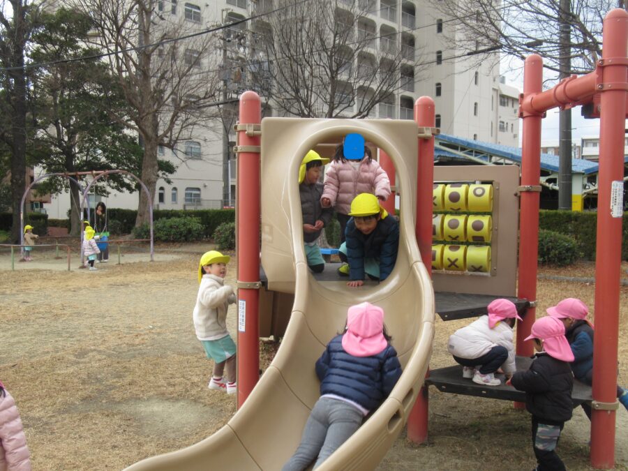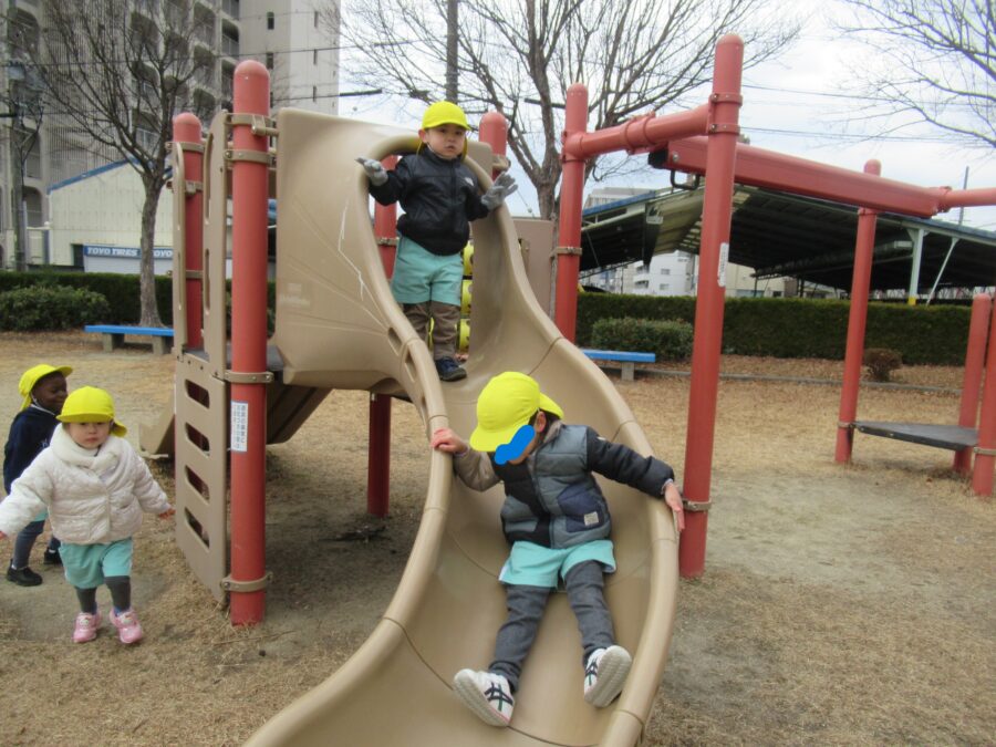 後ろ向きで滑ってみたりしてパンダ組とりす組で仲良く遊んでいましたよ![]()