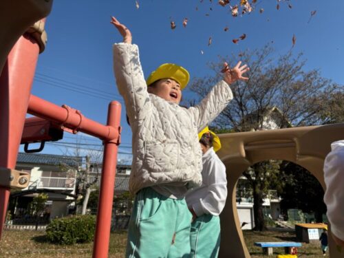 「ハッピーバースデー🎶」と落ち葉を紙吹雪のように散らして遊んでいました🎉