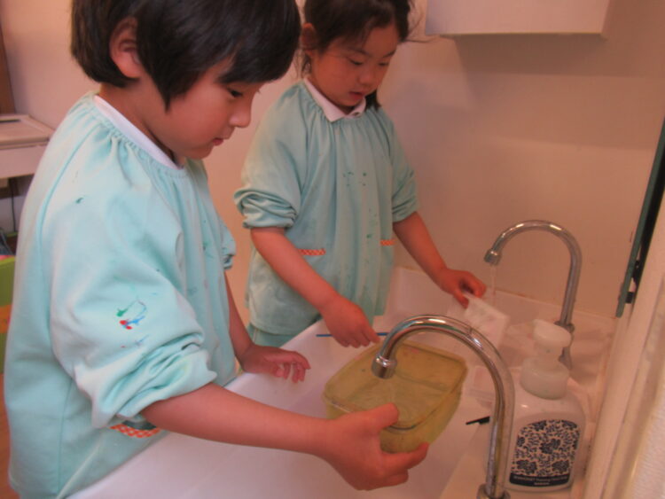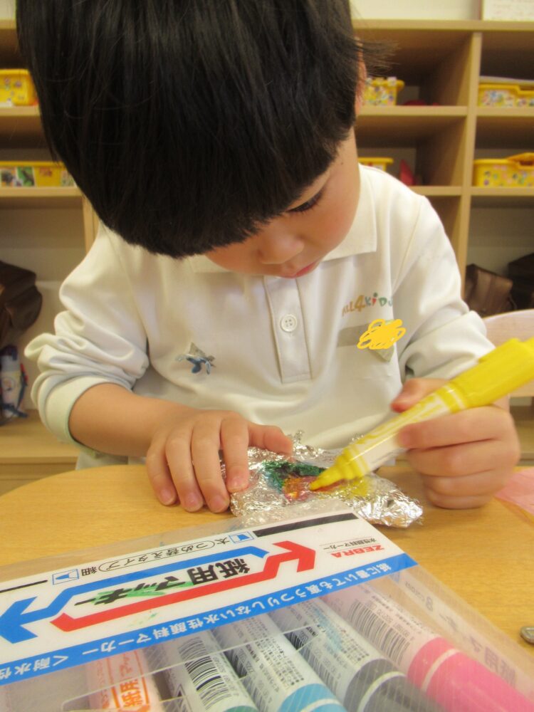 トイレットペーパー芯の丸の形でしゃぼん玉を表現する子もいましたよ✨