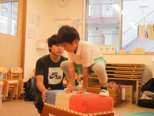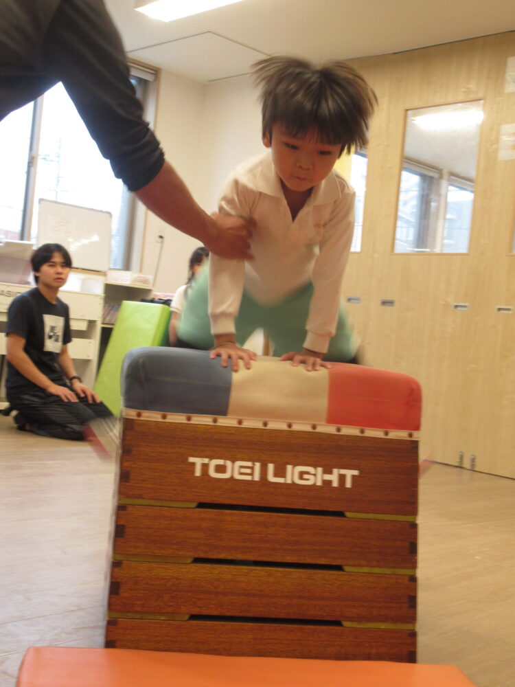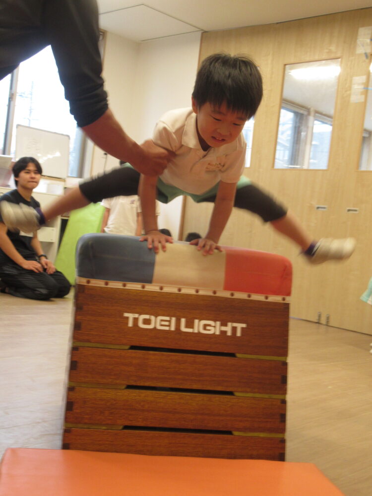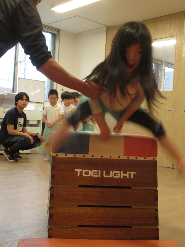その次は跳び箱の向きを縦にして飛び乗ることに挑戦!
