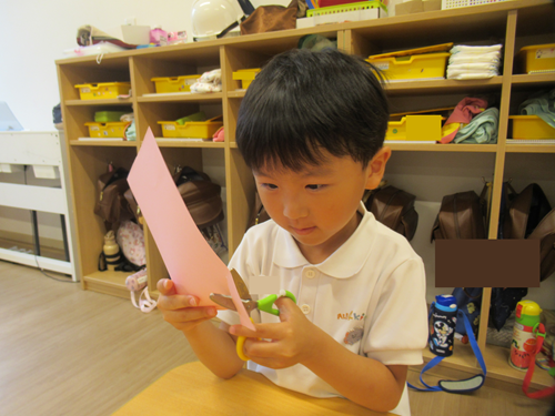 お部屋では、ついに梅雨期に突入ということで、あじさいの製作をしました✂