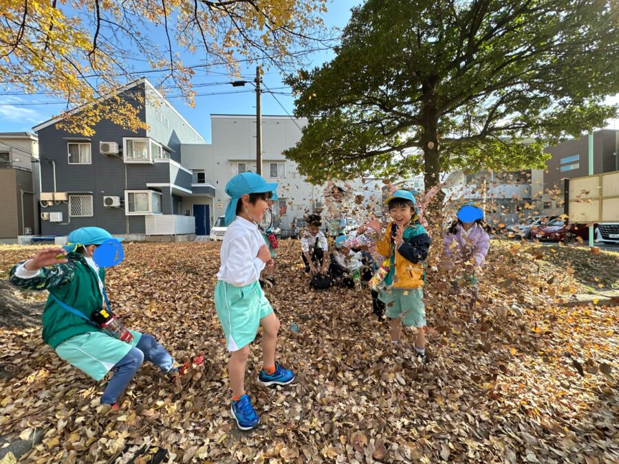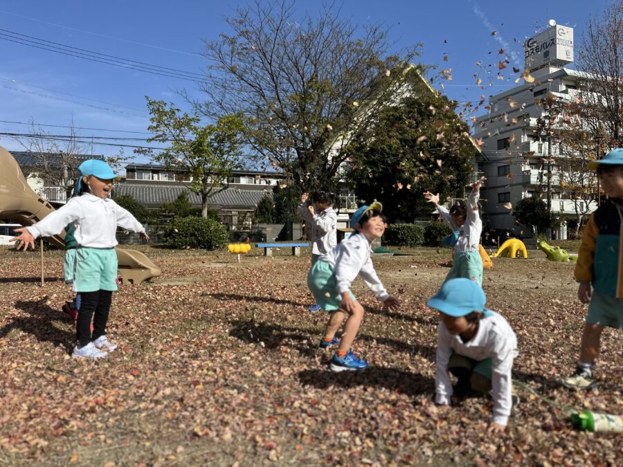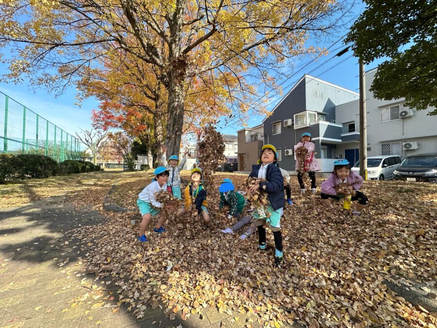 張屋公園で落ち葉遊び🍂