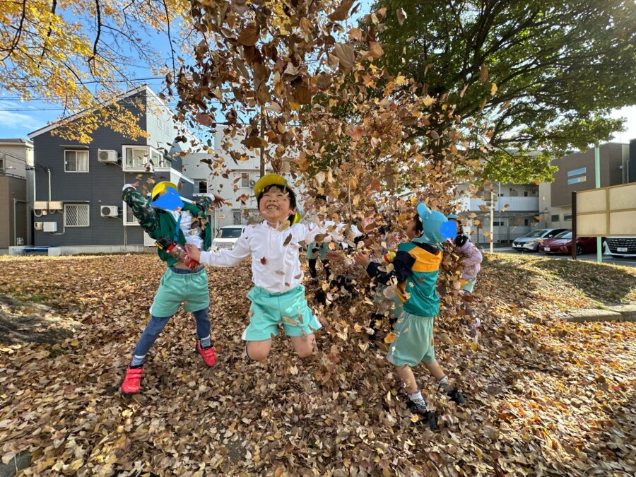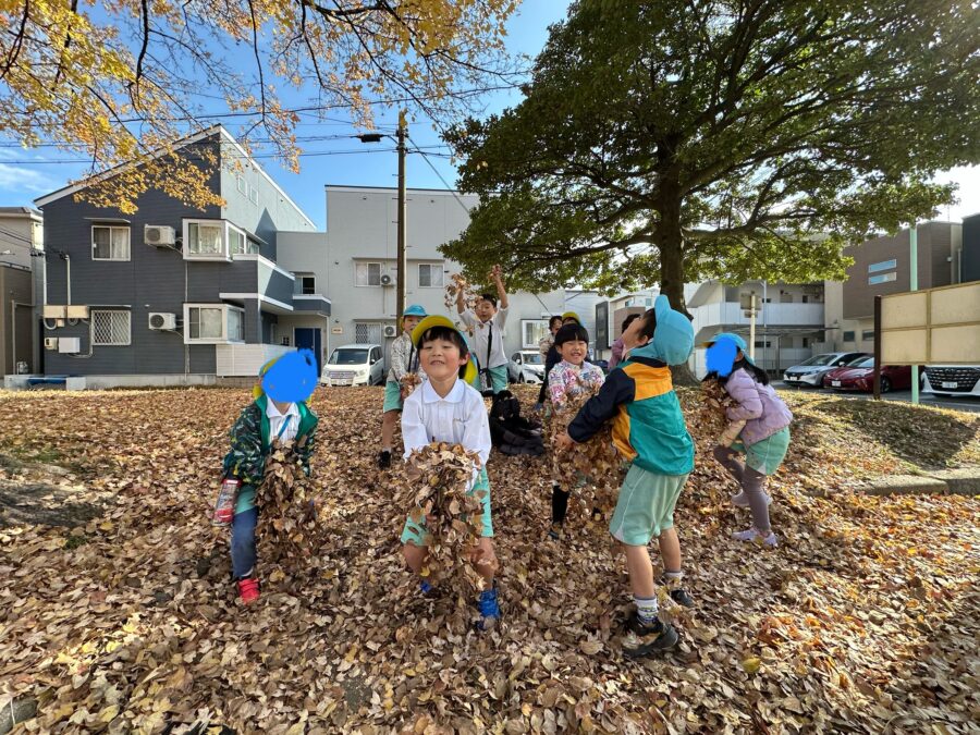 みんなニコニコで何度も落ち葉シャワーを楽しんだぞう組さんでした😊