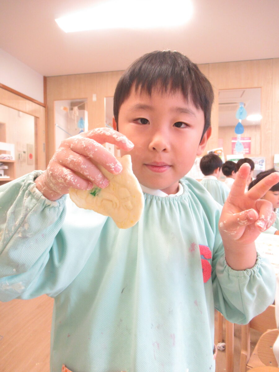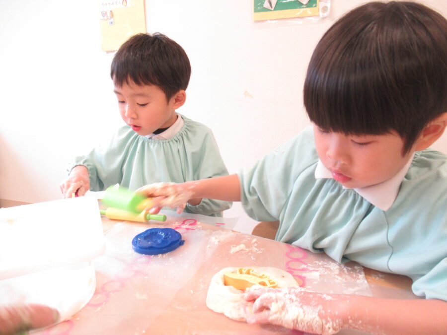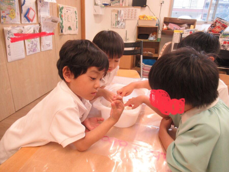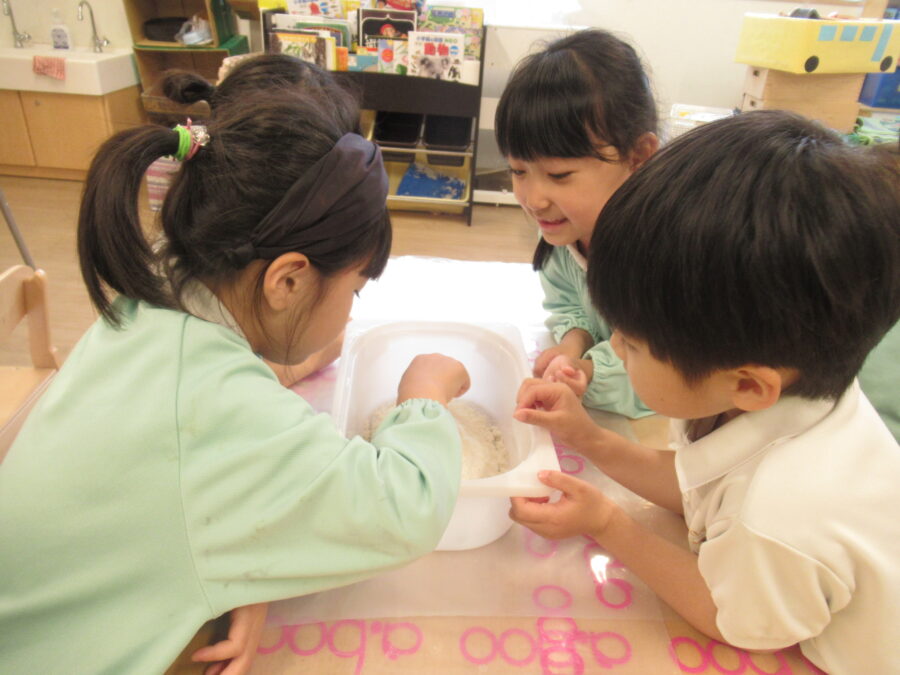 まずは、小麦粉の匂いや触感を楽しんでから水を入れていきましたよ⭐️