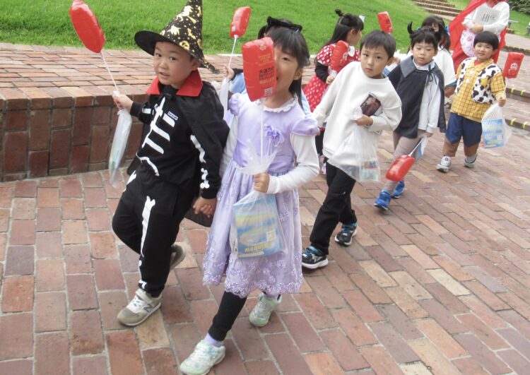 に分かれて、お菓子をもらいにいきました☺️🍬