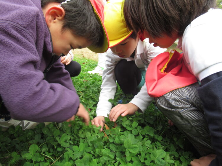 グラウンドで四葉のクローバーをさがしたりしました🌱