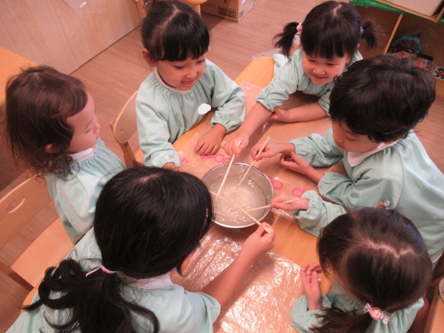「固まるかな?」「えーまだまだだよ!」