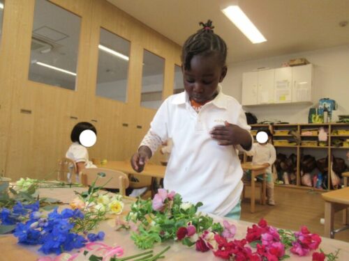 フラワーアートはお花の名前を一つずつ確認した後は、好きなお花を選んでいきました🌷