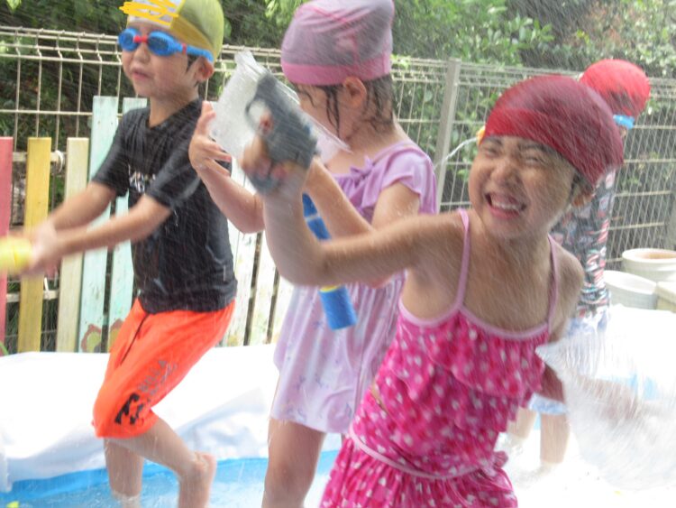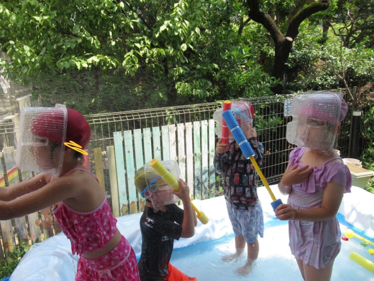 🐘ぞう🐘ママ先生☺️ 今日は少し遊んでから… 水遊びをしました☺️ お友達のママも一緒に遊んでくれてこの笑顔☺️ 顔につけると水がかからない!面白い発見もありました💡 カテゴリ: 塩釜口(4~5歳) タグ: