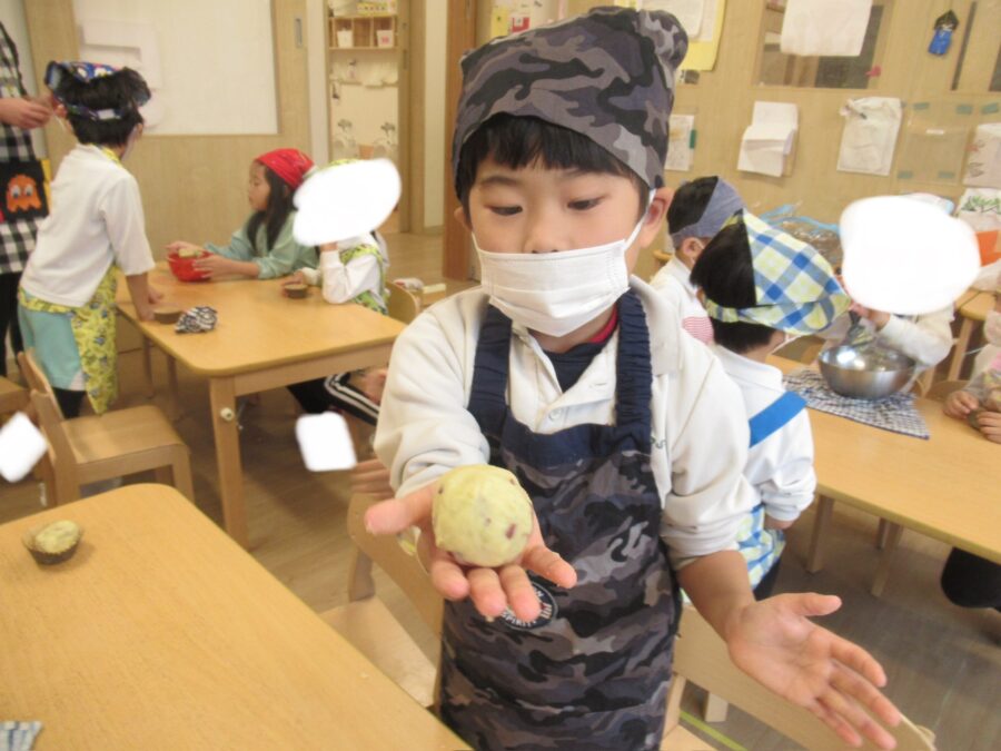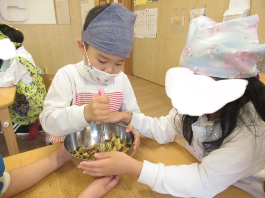 お芋を潰す作業は、グループのお友だちと協力して行う姿が見られました😊