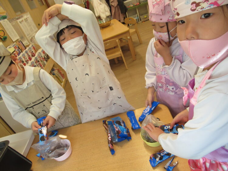 🐘クッキング🐘 今日はマフィン作りをしました 卵を割って バターをつぶして オレオも粉々に…! トッピングの生クリームも泡だてました みんなで決めた役割分担で、楽しく作りました☺️ カテゴリ: 塩釜口(4~5歳) タグ: