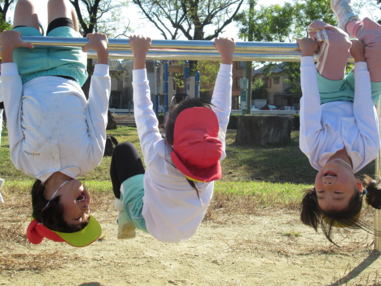 少し太めの棒でぶら下がる子どもたちです☺️