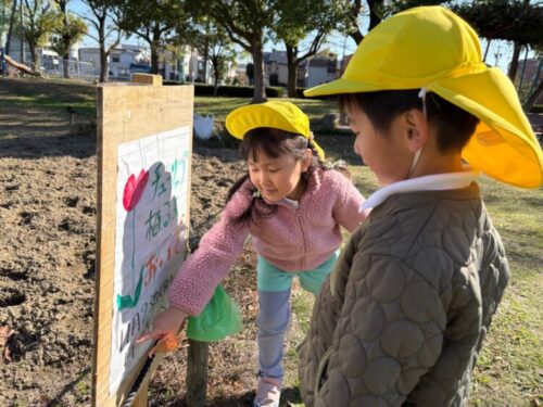花壇にチューリップを植える案内の看板を発見🌷
