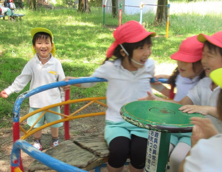 回転遊具で大笑いの子どもたち
