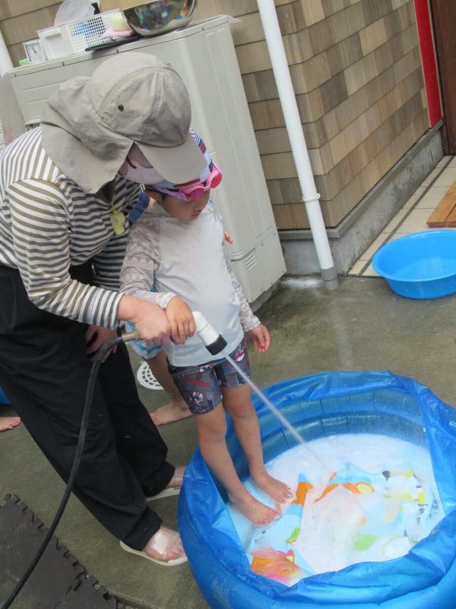 たくさんアワアワが出来たプールにりす組さんが