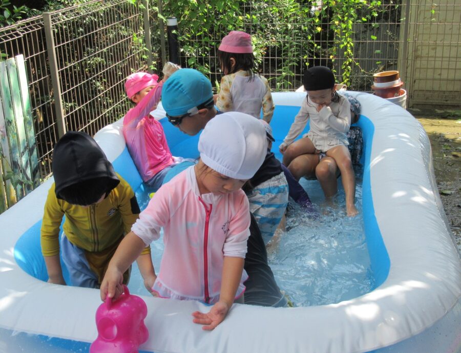 大きいプールではみんなでシャワー🚿をつくって