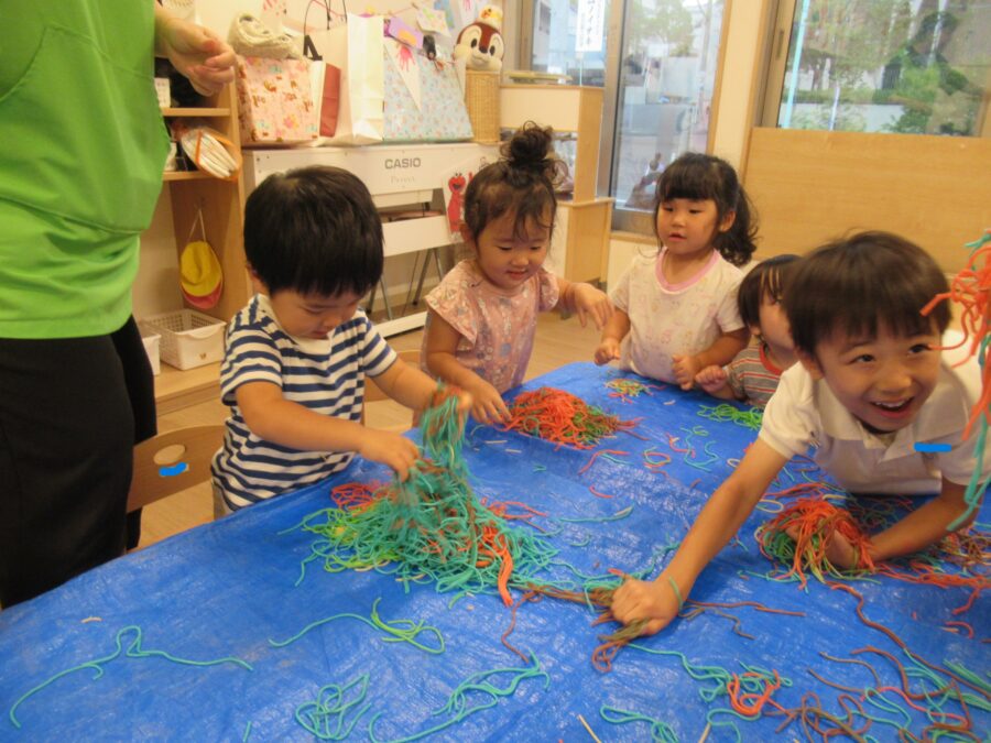 カラフルなパスタに「青もある!みどりも!」と大興奮なみんな。