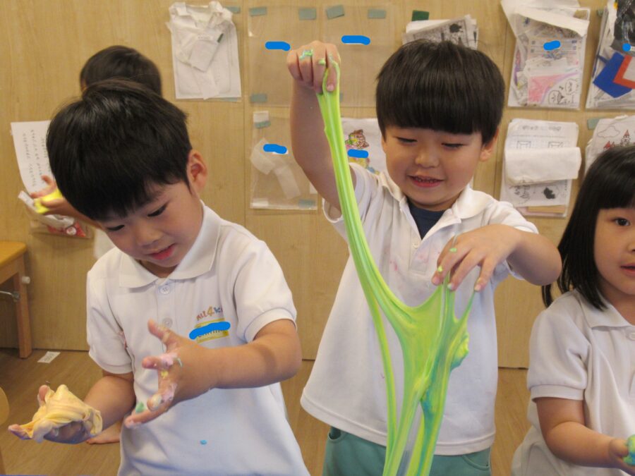 自分たちで色を付けてこねこねこね。