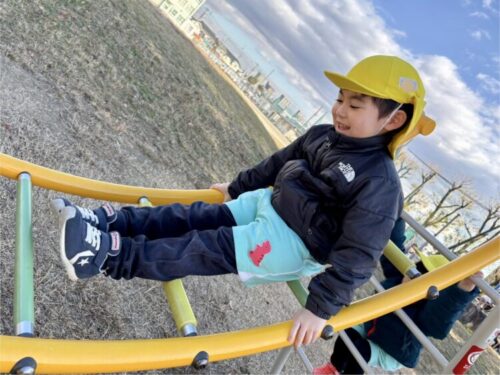 風が冷たい日ですが元気いっぱい走り回る子どもたちは体がぽかぽかになって途中から上着を脱いでいました😆![]()