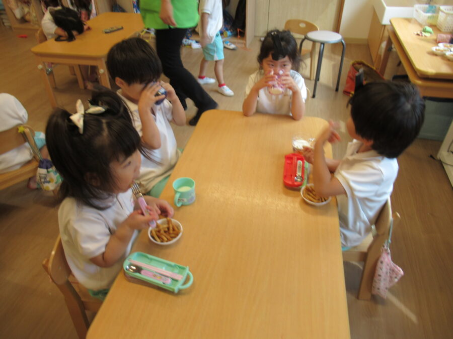 🦁おやつタイム♬ 今日の午後のおやつは「マカロニあべかわ」と牛乳☺ 🦁さんはお休みが多く、おやつはたくさんおかわりできました。でも、お友だちが少なくて寂しかったね(>_<) カテゴリ: 塩釜口(4~5歳) タグ: