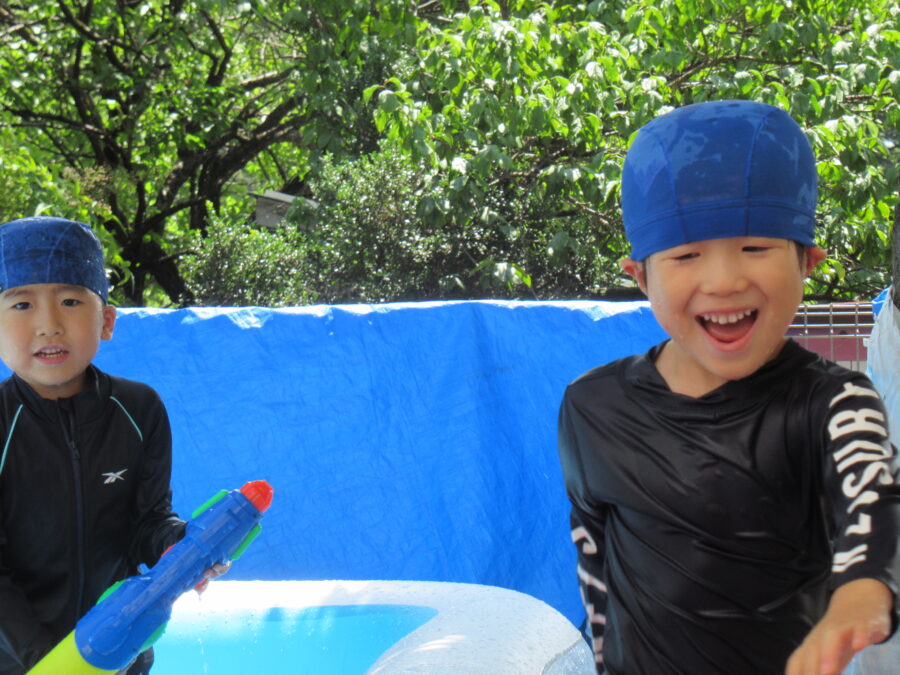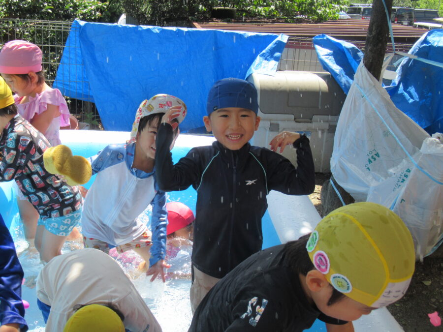 今日は良いお天気♪みんなで、元気よくプールで水遊びを楽しみました☺