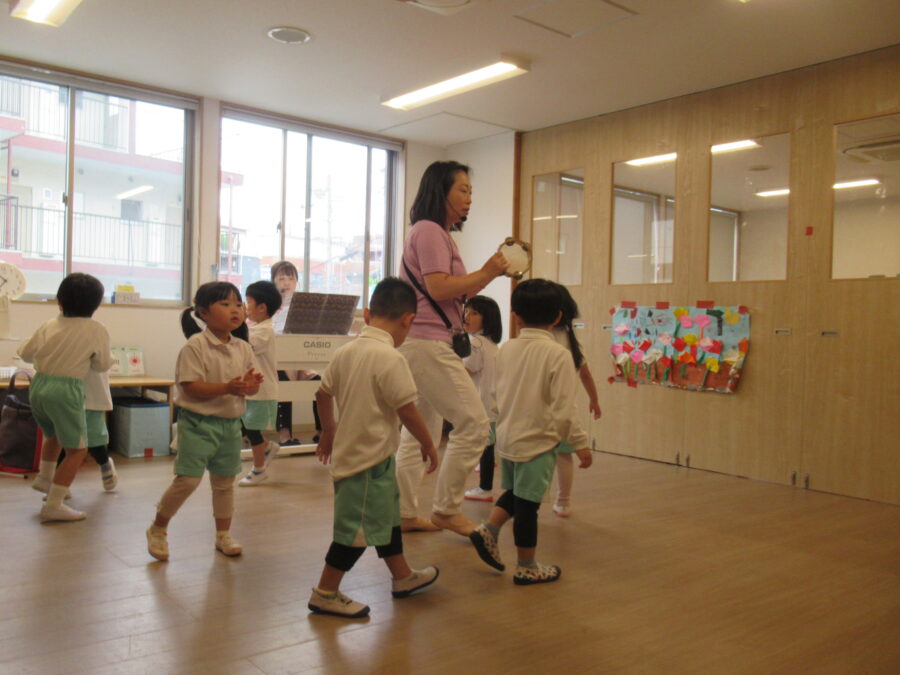 🦁リトミック🎵 今日は、リトミック🎵手をたたいたり、カスタネットを使ったりリズムに合わせて体を動かし、楽しかったね。 リトミックの後は、少しだけ公園に。みんな「おなかすいたよー」給食会が待ち遠しかったね☺ カテゴリ: 塩釜口(4~5歳) タグ:
