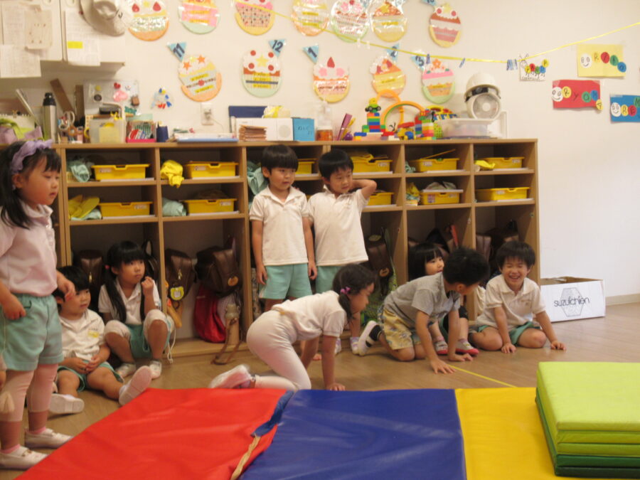みんなでマットと、跳び箱を使い体操したよ!楽しかったね。