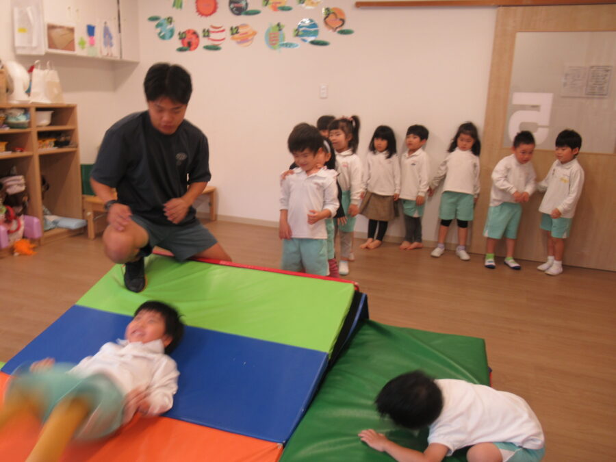 🦁今日の一日 今日は運動会後の体操教室(^^♪マットを使ってでんぐり返し…、とっても楽しそうでした。 公園では、ブランコをしたり、木の実をとったり虫を探したり… 今日も元気いっぱいの🦁さんでした。 カテゴリ: 塩釜口(4~5歳) タグ: