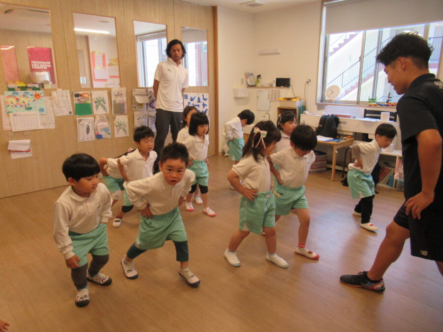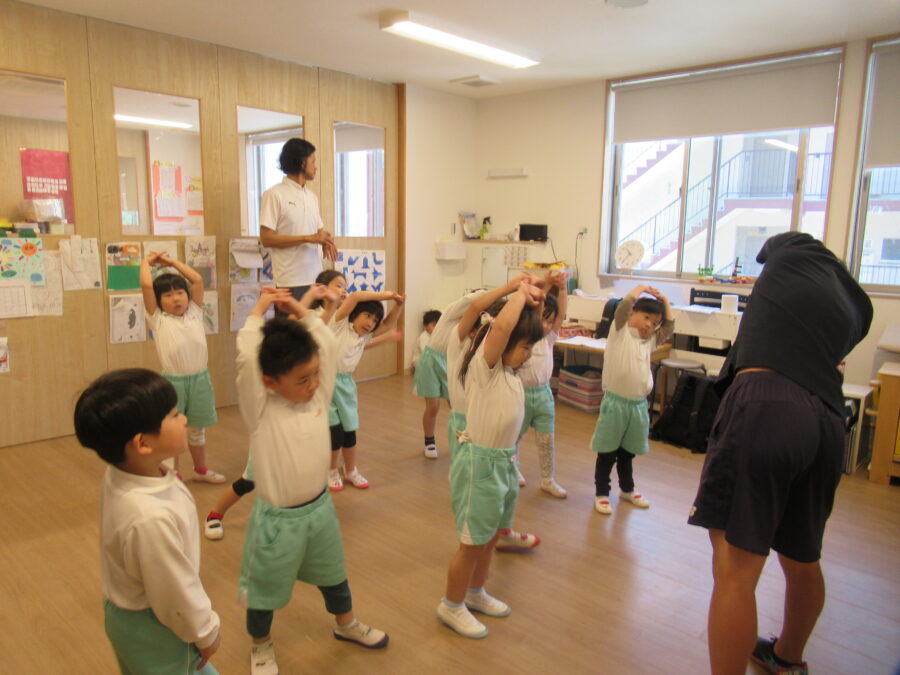 今日は、体操教室の日。しっかり準備体操をして・・・