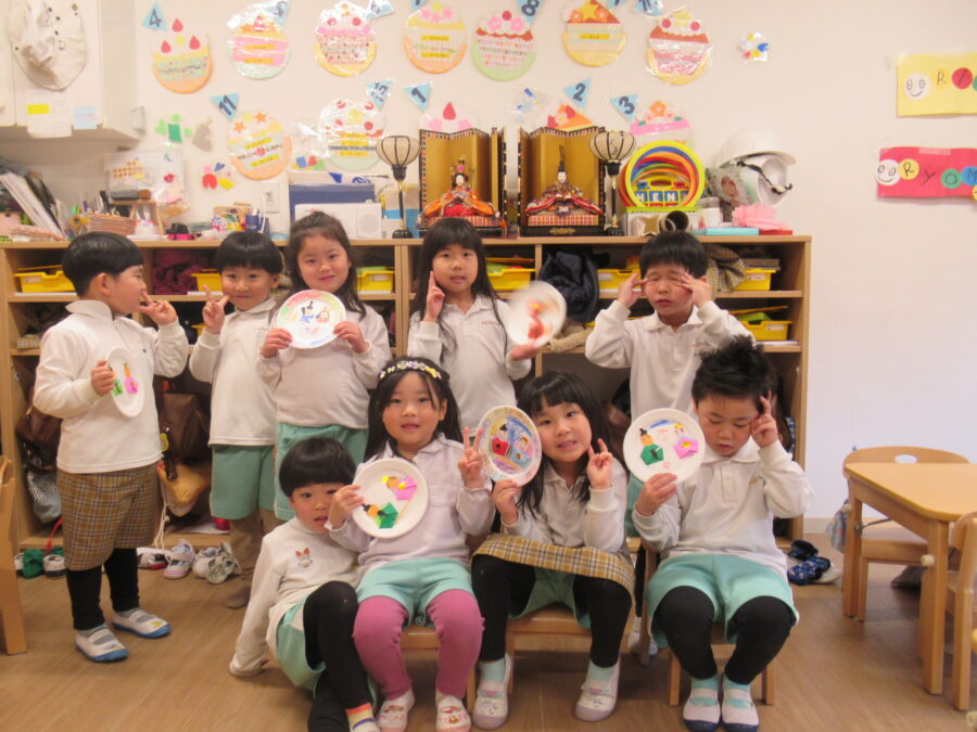 なかなかみんなで写真を撮るのもむずかしいですね。((´∀`*))ひなまつり製作も、「作りたくなーい!」という子もいれば「作りたい!」という子もいたりで、自由な🦁さんでした。(笑)