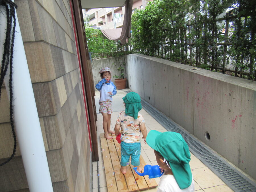 そして、今日も欠席が多かった🦁さん、プールに参加する子も少なく、しゃぼん玉をしたり・・・