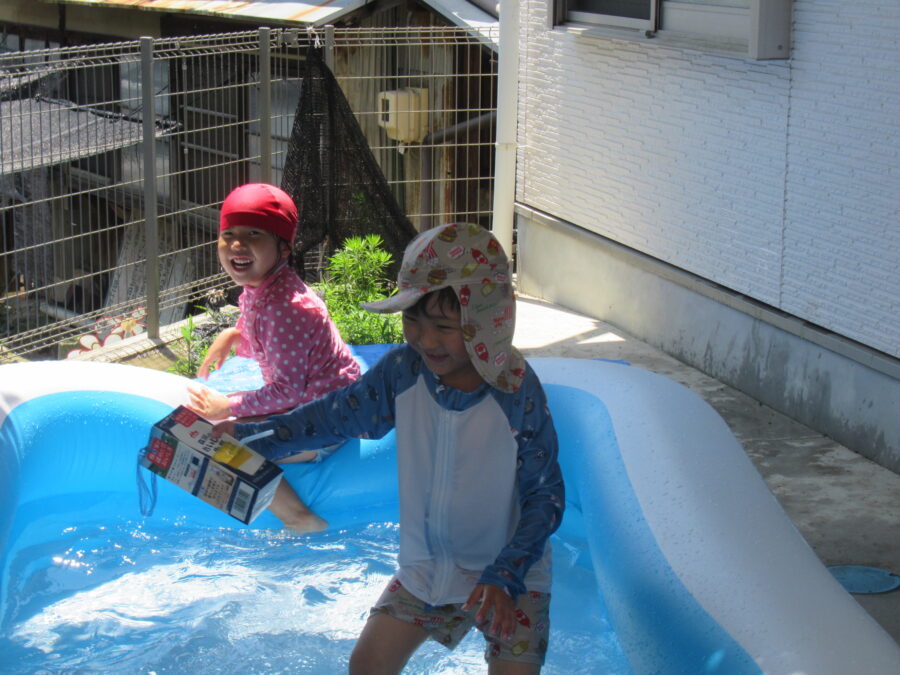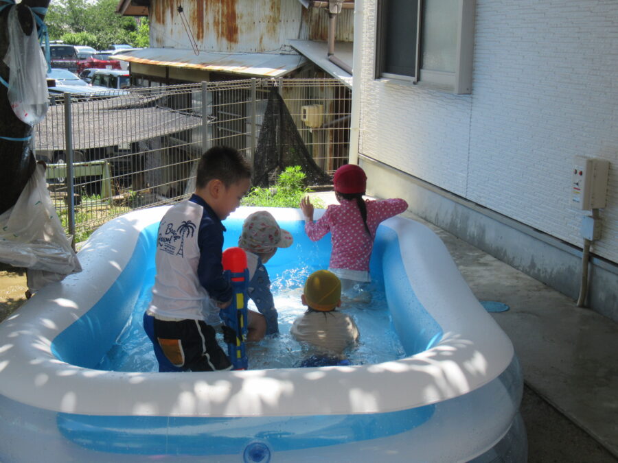 今日は、お天気が良く暑いのに、「プール遊びしたくなーい(>_<)」というお友達と、「プール遊びしたーい!(^^)!」というお友達に分かれました。ということで、プール遊びしないお友達は室内遊び。 プール遊びをしたいお友達は元気よくプールで遊びました。何をして遊びたいのか?自分たちで選び楽しむことも大切ですね😊