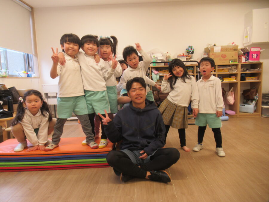 月曜日の体操は、担当をしてくれている先生が最後ということで、みんなで写真を撮りました。(^^♪