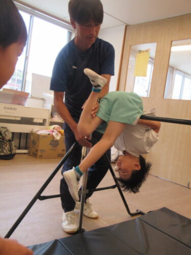 体操講師に体を持ち上げてもらいながら逆上がり成功👏✨