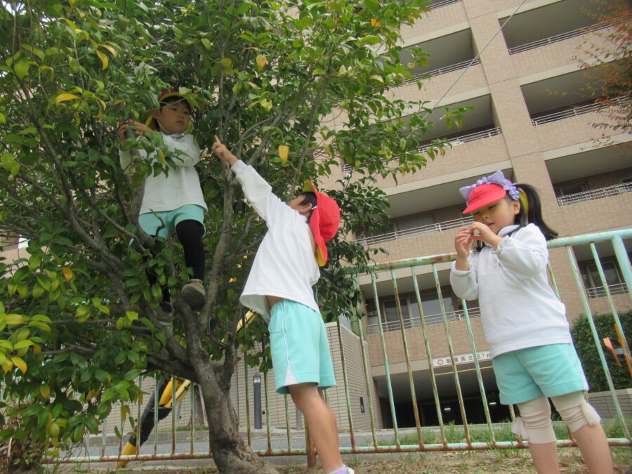 リトミックがあったので、公園に行く時間は少しでした。木に登って、実をとったり鬼ごっこをして元気よく走り回りました🌝